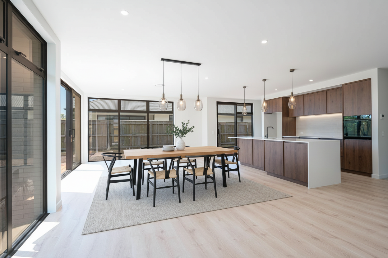 12 Hallmark DriveCrafted by Enstyle Builders, this brand-new 223sqm home embodies modern design, quality craftsmanship, and effortless comfort in the sought-after Paton Rise development. Set on a sunny 600sqm section, this thoughtfully designed residence features three bedrooms, two bathrooms and two spacious living areas, ideal for families or those seeking a refined, low-maintenance lifestyle. The open-plan living and dining zone is bright and airy, enhanced by floor-to-ceiling glazing that seamlessly connects to multiple large Kwila decks, perfect for year-round entertaining.