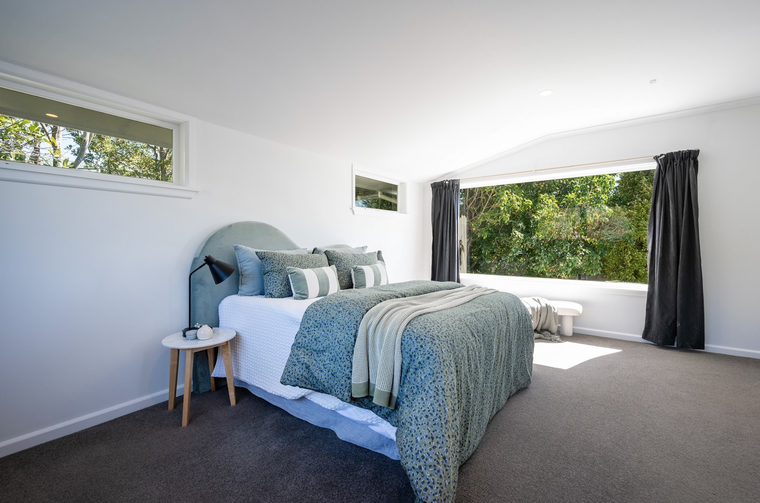 Designed with family living in mind, the home features a dedicated kids’ wing with three double bedrooms, a family bathroom, and a fun kids’ lounge. The master bedroom is a private retreat, complete with a large picture window overlooking the backyard and Tasman Bay, plus an ensuite.